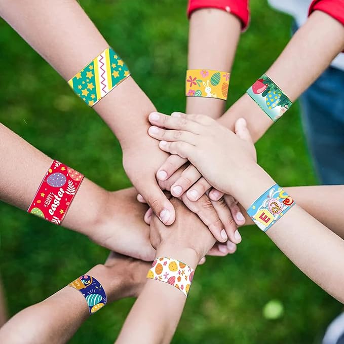 - Easter Gifts : The 36pcs easter slap bracelets are perfect for kids, girls, boys, toddlers, easter basket stuffers, easter basket fillers, easter gifts, easter toys, party favors, birthday gifts, school classroom rewards, carnival prizes, pinata, goodie bags.