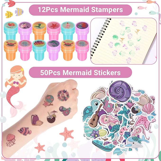 - Multiple Occasions: the mermaid themed party favors kit can be applied not only for mermaid birthday party supplies, but also for other activities, such as school classroom rewards, baby shower, goodie bags fillers, mermaid party, Valentine's Day, carnival prizes, Christmas stocking stuffers, Easter eggs, pinata stuffers, etc.; These adorable mermaid party favors are sure to be a hit