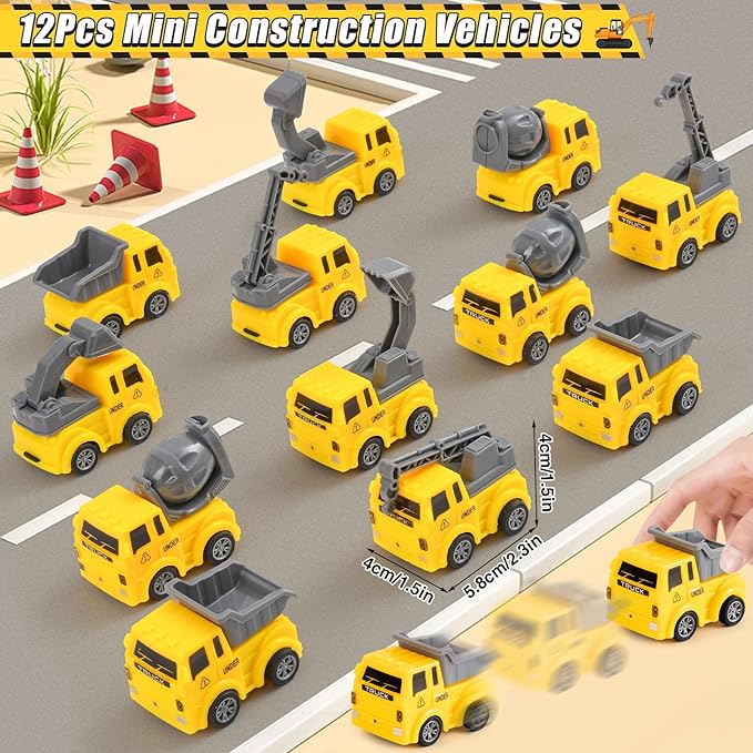 - Intriguing Construction Design - This party favors have many elements of a construction site, including cranes, bulldozers, excavators, safety signs and construction tools. The four distinctively patterned construction gift bags are fascinating. Moreover, 4 different pull-back construction vehicle toys are the kids' favorite, just pull the wheels and then release, the car will be able to slide forward a long distance, effectively triggering the kids' curiosity, exercising hands-on skills