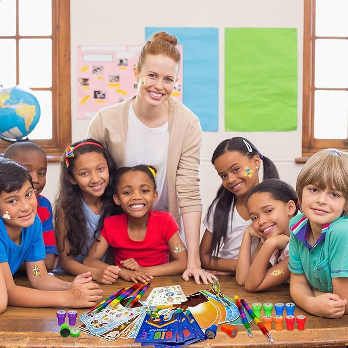 - Diverse Usage Scenarios:Novelty Prizes Bible School set is suitable for gift exchange, family gatherings, children's birthday parties, Religious party,Easter party, spring party,Christian bible party,classroom parties,gift bag filling, classroom prizes and daily use, classroom party set for kids to meet any of your usage needs