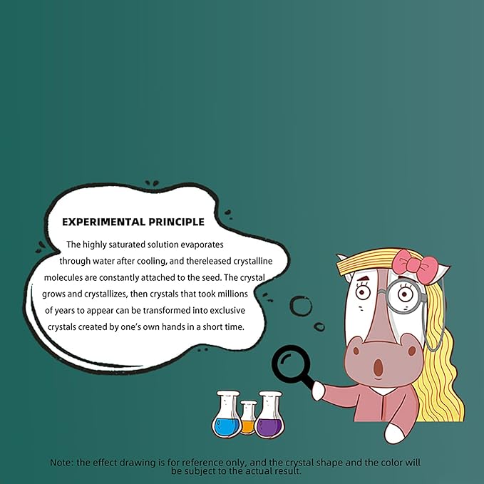 - Easy to operate: The crystal growth kit is easy to operate. Simply mix the material with an eyedropper, pour it into the silicon mold, and wait a few days for the crystals to grow. The stirring rod distributes the liquid evenly and prevents crystallization from clumping.