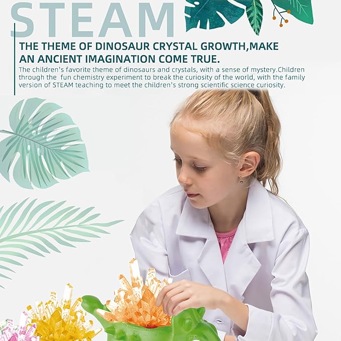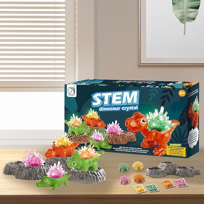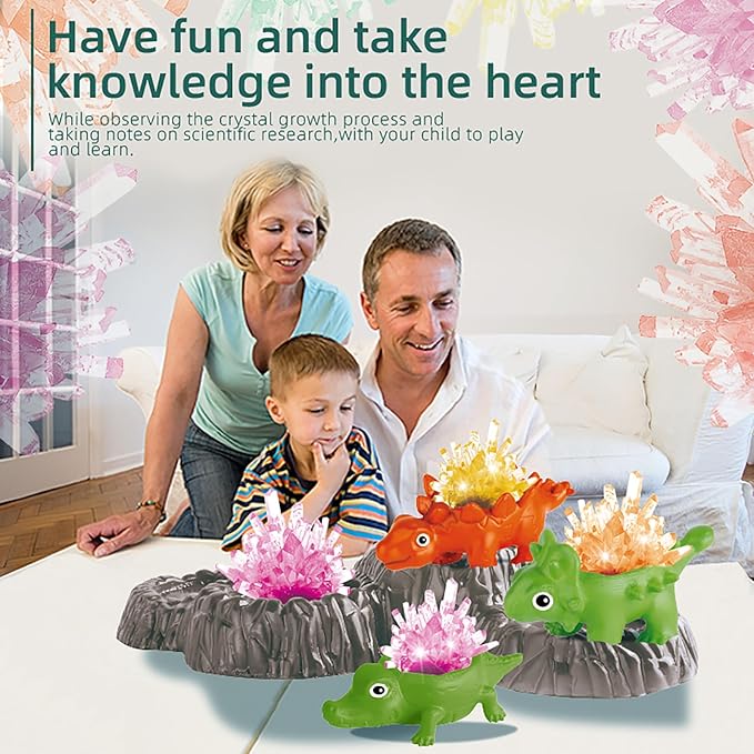 Crystal Growth Kit - 3 Vibrant Colorful Dinosaur growths - Science kit for Kids Ages 6-8, Great Gift Toys for Boys and Girls Ages 8-12, STEM Projects for Kids
