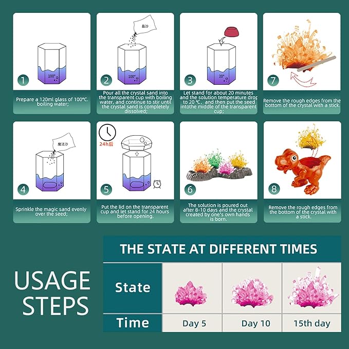 - Perfect gift: The crystal growing kit is a perfect gift for children who are interested in science and technology. It is also a great gift for birthday parties, Christmas parties, and other occasions.