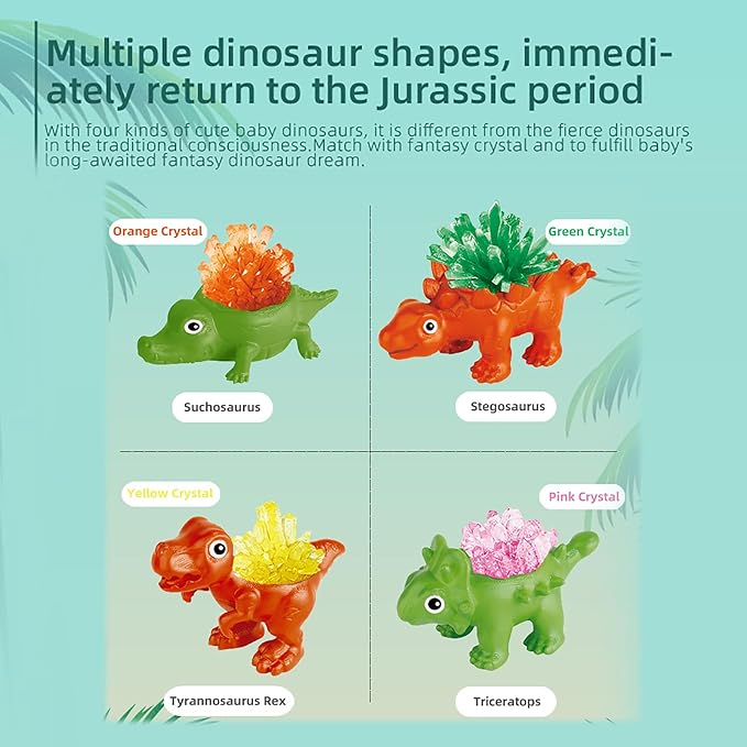- Grow Orange, Blue And Purple Dinosaur Crystals: Create beautiful crystals spines for 3 dinosaurs and bring them into life! Let your child feel like a real chemist watching the crystal grow in 72h. Chemistry has never been so fun and colorful!