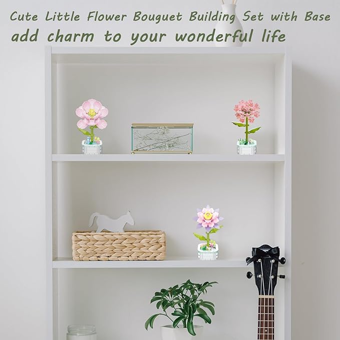 - Cute Trinkets: Flower bouquet building set is small and cute in shape, fresh and bright in color. The flowers and stems come to life. It does not take up a large area and can be placed anywhere in your home or office for desk trinkets, home decor