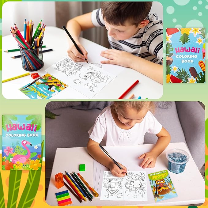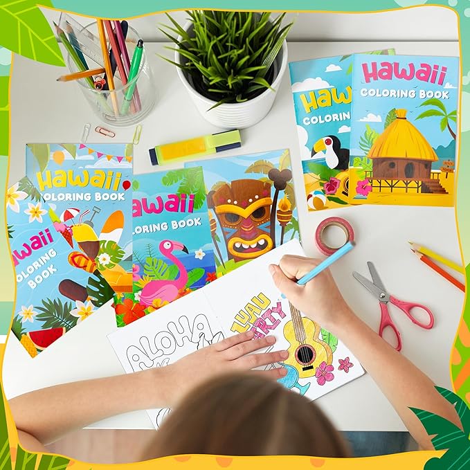 - Hawaii Theme DIY Craft-- Our mini summer coloring books set is educational, printed with cute flamingo hula surf party and other interesting patterns, catering to children's interests and tastes. The coloring booklet can inspire kid's creativity, color matching and artistic talent, learning by playing!