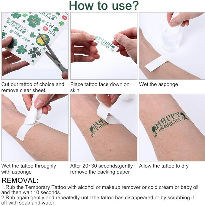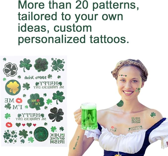 - Safety and Fun: The included shamrock tattoo stickers and green mustaches are non-toxic, odor-free, and safe for skin application, offering a playful way to decorate arms, faces, or any smooth surface, making them a suitable addition to St. Patrick's Day festivities.