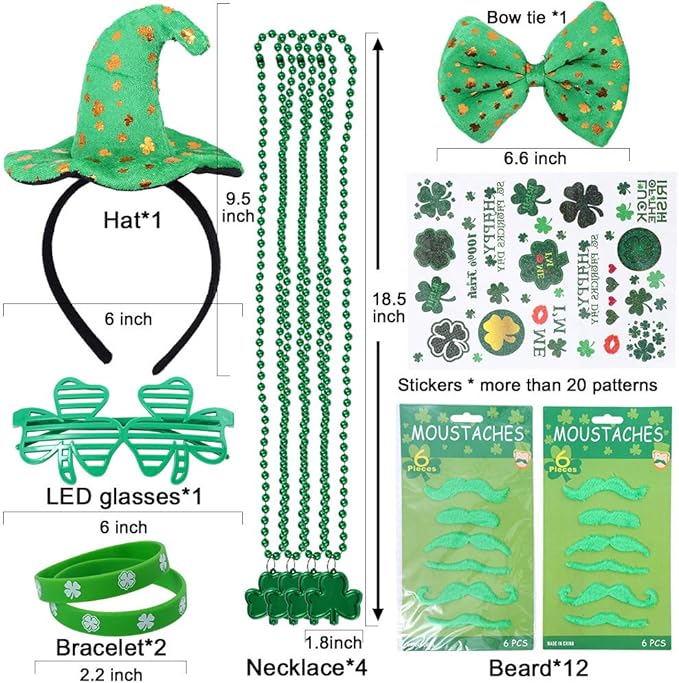- All-Age Appropriate: Constructed from durable and safe nontoxic materials, these accessories are suitable for kids and adults, enabling anyone to partake in the St. Patrick’s Day festivities.