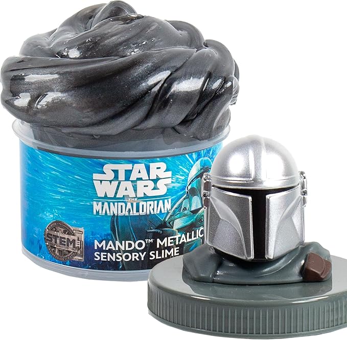 - INCLUDES: 8 oz. Mando Jar of Pre-Made Metallic Gray Slime, Collector Card