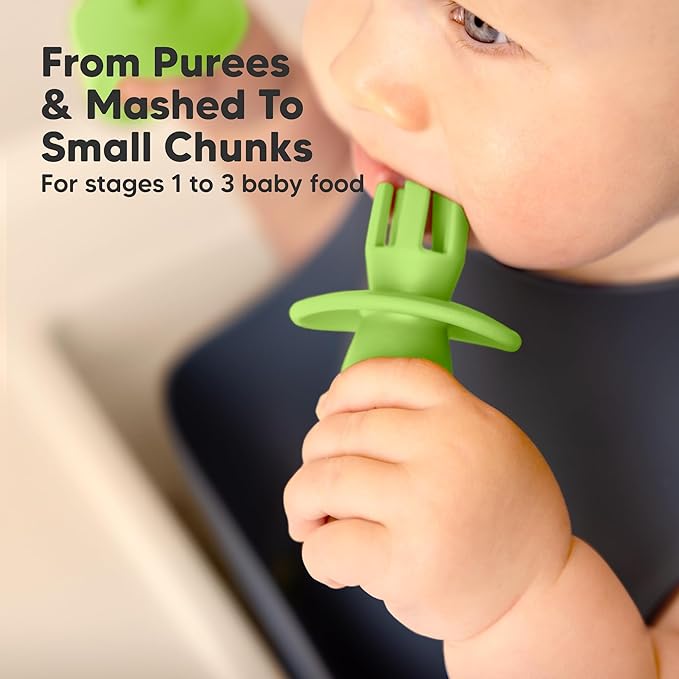 - Baby Led Weaning Spoons & Forks - Designed to explore different food textures, from purees to mashed and solid food chunks, your baby can transition seamlessly from Stage 1 to 3 of BLW and learn to eat independently with this baby training pre spoon.