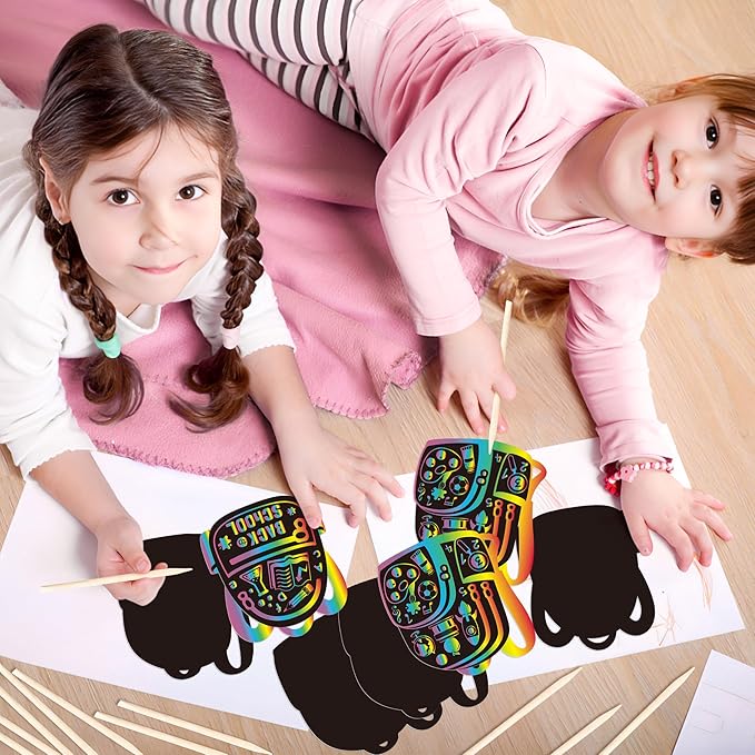- Back to School Set: You can receive a sufficient quantity of school bag scratch cards, which features 2 styles of book bag scratch cards, 30 sheets each, as well as 20 wooden stylus pens and a bundle of yellow ribbons, kids are free to create unique back to school gifts.