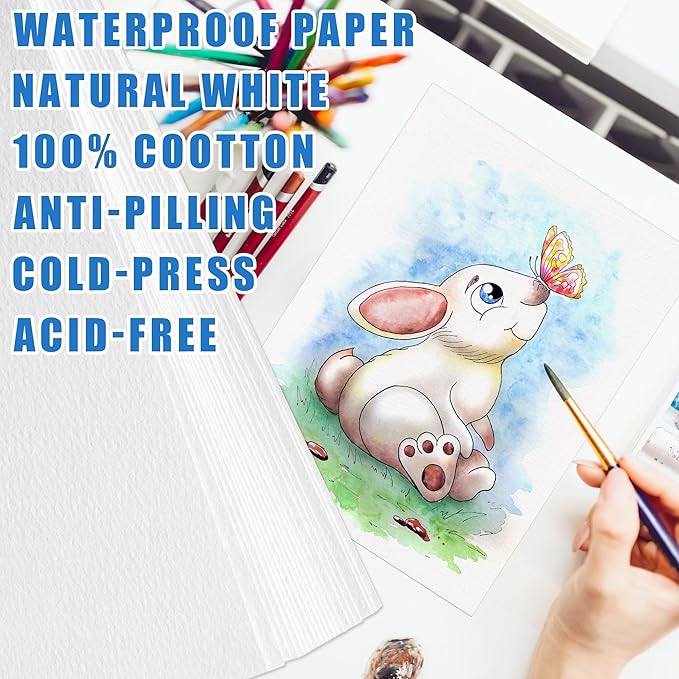 - 【Comfortable Material】: The material of watercolor paper is made by 100% cotton pulp, has good water absorption, and is cold-pressed and acid-free. Watercolor paper pad material is soft and skin-friendly, does not hurt your hands, and gives you a different creative experience.