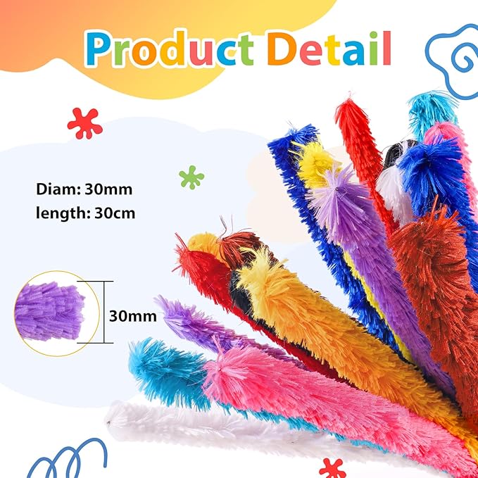 - Fuzzy and Soft: With a thickness of 30mm, pipe cleaners have longer fluff, providing better coverage, and making the crafts look fuller and more complete. Pipe cleaners bulk is suitable for DIY cute animals like dogs, cats, flowers, lush plants, wreaths, etc., making them lively and delicate