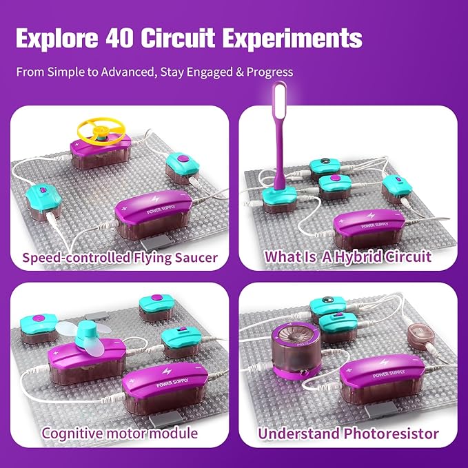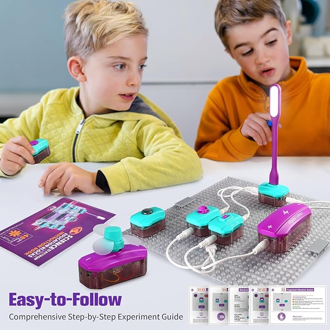 - WHAT'S IT?——This circuits for kids to learn circuits and electronics, ranging from simple to complex devices. Through hands-on exploration, they discover answers to questions like how light bulbs work, how speakers produce sound, and how fans rotate, deepening their understanding of electric circuit kits for kids and fostering creativity.