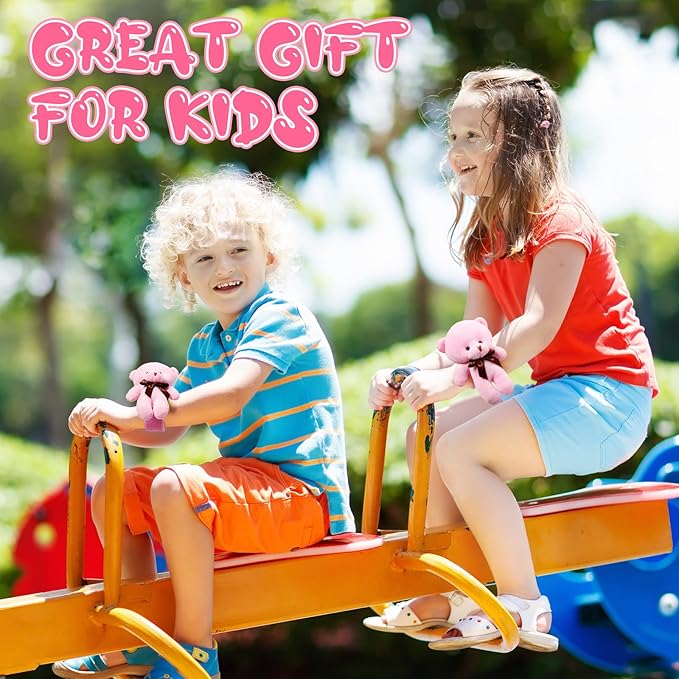 Ceenna 16 Pcs Valentine's Day Stuffed Bear Animal Slap Bracelets Plush Bear Slap Bracelets 8.66 Inch Pink Adorable Bear Slap Wrist Bracelet Bulk for Birthday Party Gifts Favors Goodie Bag Fillers