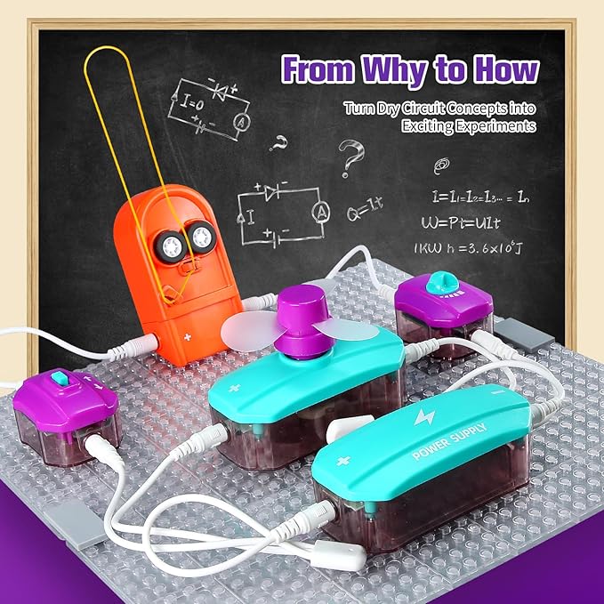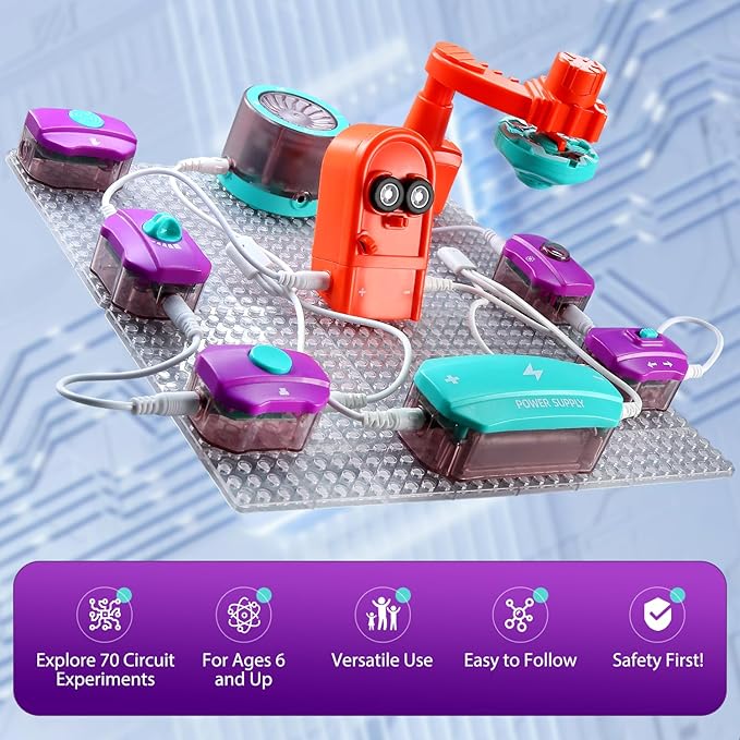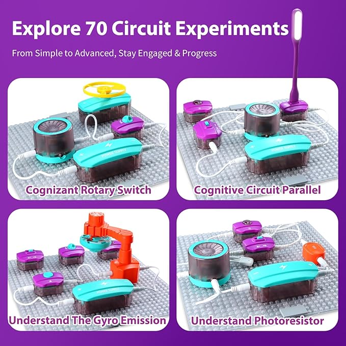 - WHAT'S IT?——This circuits for kids to learn circuits and electronics, ranging from simple to complex devices. Through hands-on exploration, they discover answers to questions like how light bulbs work, how speakers produce sound, and how fans rotate, deepening their understanding of electric circuit kits for kids and fostering creativity.