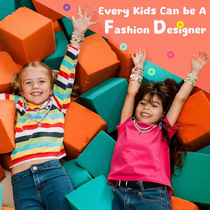 - Making a Jewelry Craft is Very Simple: combining clay beads with letter beads, colored round beads, fruit beads, talismans, etc, and then connecting them with elastic strings. Children will spend several hours creating and stimulating their creativity. This DIY toy kit is packaged in a gift box with a ribbon handle, very portable. Suitable as a toy gift for parents to give to their children, parents can also accompany their children in designing various jewelry crafts
