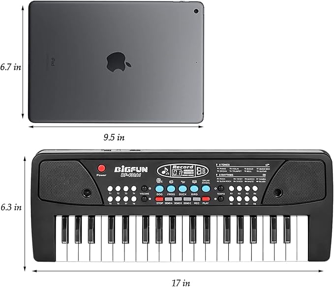 - 🎹Portable Electronic Piano Keyboard For Kids: This children's piano keyboard is charged in two ways, using a standard U.S. power adapter, or powered by 3 AA batteries (not included). The piano is 43*16*5.4 cm /16.9*6.3*2.1 inches, which is easy to carry and children can play anytime and anywhere.