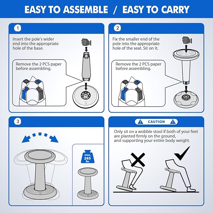 - Sturdy & Easy Assembly - This active stool features a robust conical seat-stem-base connection that becomes stronger under increased pressure, supporting up to 265 lb. Additionally, the assembly requires no tools, ensuring convenience and simplicity.