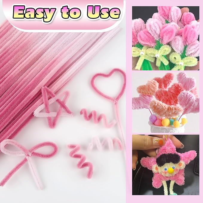 TOAOB 100pcs Pipe Cleaners Gradient Pink Chenille Stems for Crafts 12 Inch Fuzzy Sticks Craft Supplies for DIY Art Craft Projects Home Decorations