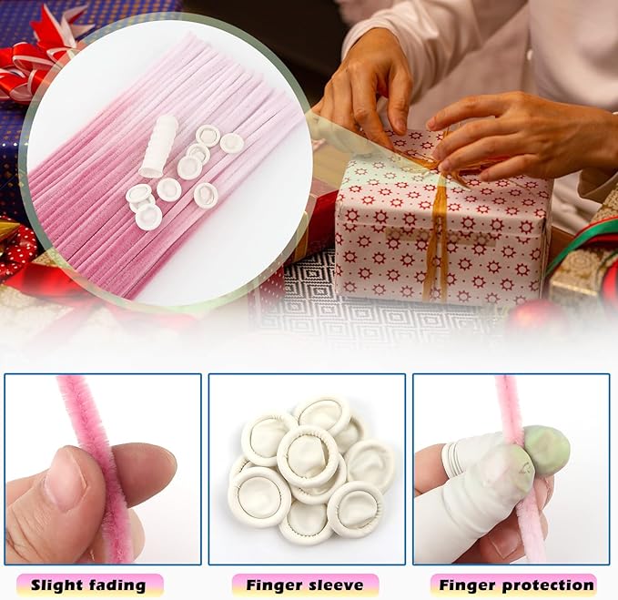 - Size: 100pcs gradient pink pipe cleaners 0.24 X12 inch (6mmx300mm); 10pcs white disposable latex finger covers 55-60mm