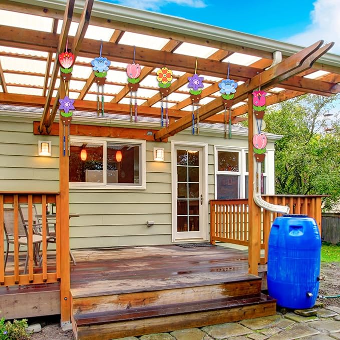 • DIY Craft Project For Kids:Paint your favorite color on the wooden flower ,and then go through the holes of wood chips and chime rods with a rope,and you will get a unique wind chime.These wooden chimes for outside will sway with the wind and made a joyful sound. Hanging wind chimes in the tree,windows, doors and walls which emit more positive energy in the spring.