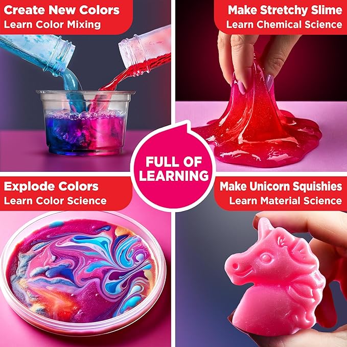 - ✅ PERFECT GIFT FOR SCREEN-FREE FUN: Give your child the gift of 50+ days of screen-free entertainment with our science kit, perfect for birthdays, holidays, Christmas or any occasion. Both girls and boys will feel like real scientists as they delve into magical experiences like Making Unicorn and Heart Squishies, Infinity Soap Volcano, Making Oobleck, Exploading Colors, Underwater Volcano, Candy Volcano, Making Perfumes and Face Mask, etc.