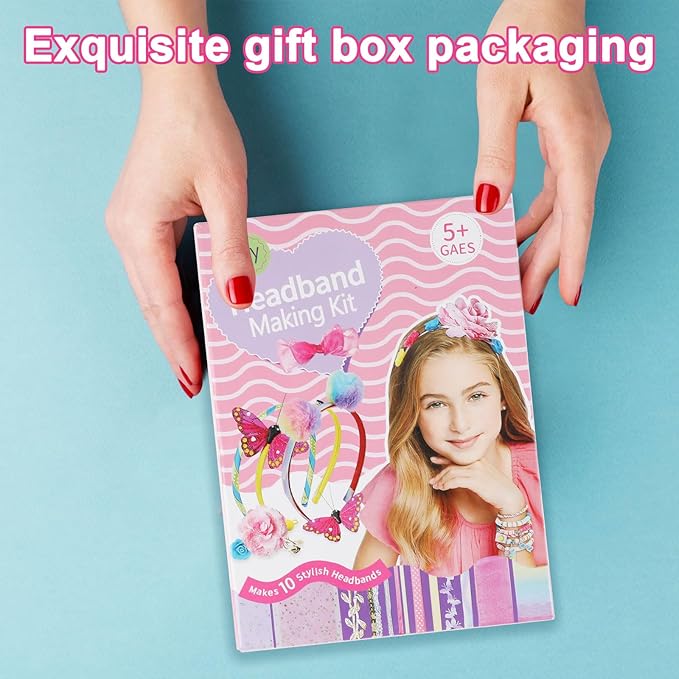 JOFONY Headband Making Kit for Girls,Make Your Own Fashion Headbands Girls Hair Accessories Arts and Crafts for Kids Ages 3-12 Birthday Presents DIY Toys (10 pcs)