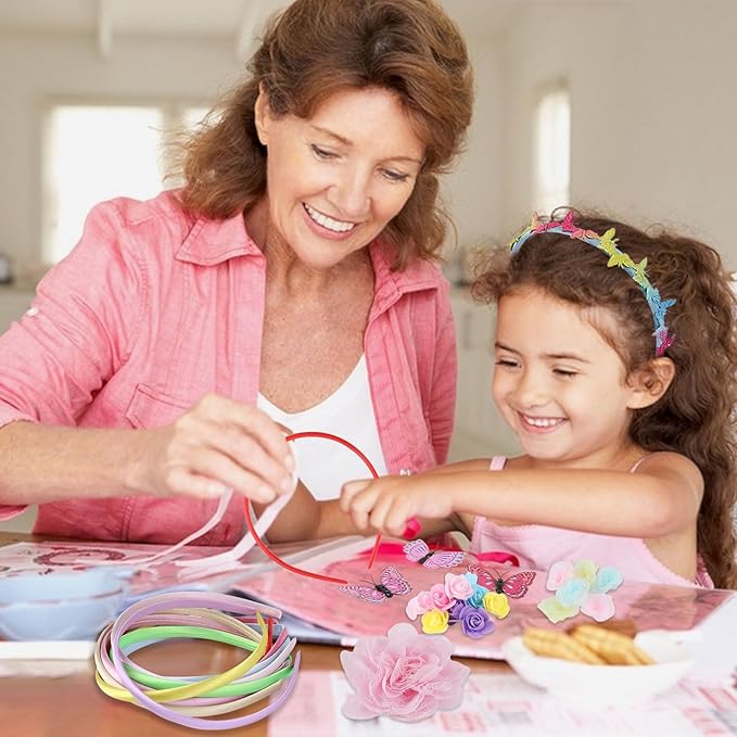 - What's In Your Package: 10 basic hairbands, many different decorative materials, flowers, butterflies, diamonds, and so on, allowing children to freely match the styles they want.