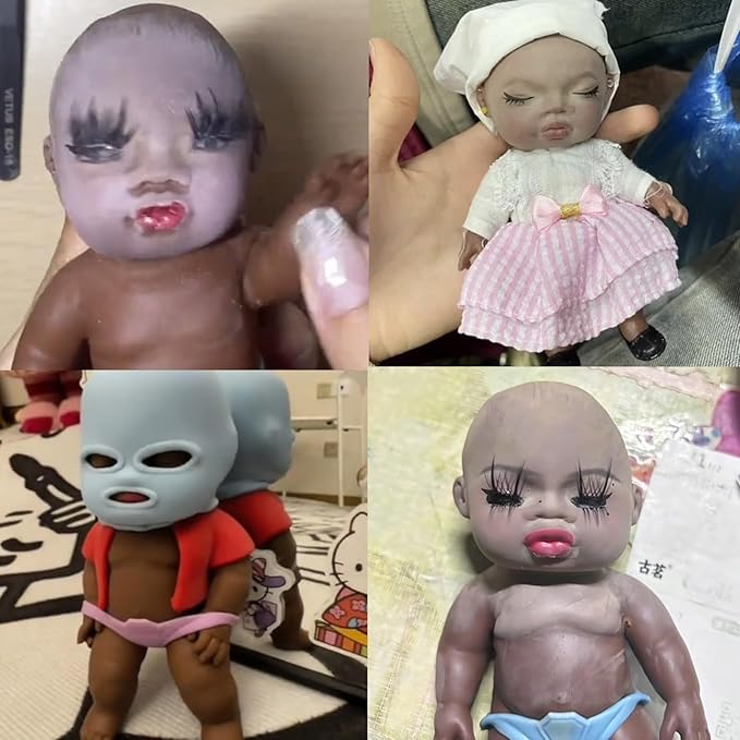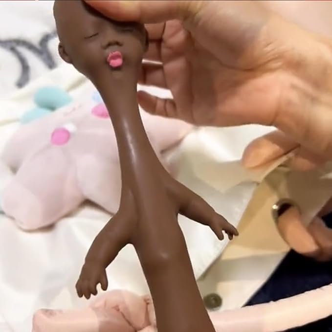 Squeeze Black Baby Doll with Makeup DIY Toy, Squishy Stress Relief Fidget Doll Toys Support Underwear Removal, Novelty Decompression Stretchy Toys for Women Girls Adults Kids (White)