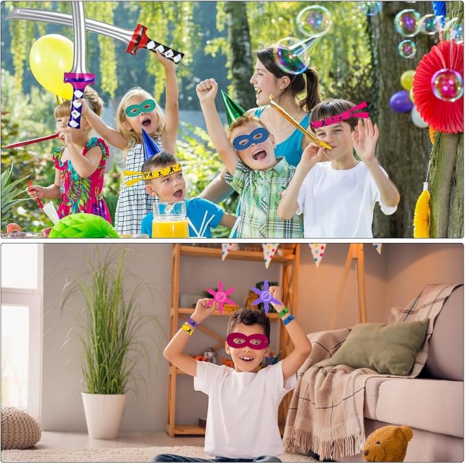 ZOIIWA 72Pcs Karate Party Favors Include Inflatable Sword Headbands Colorful Karate Party Decorations Karate Slap Bracelets Eye Mask Costume Accessories Gift Set for Kids Boys Girls Birthday Supplies