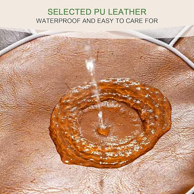 - Classic Moroccan Style: Inspired by Moroccan ottomans, the faux leather cover adds a touch of elegance to your home without the odor. (Classic Moroccan style with a faux leather cover)