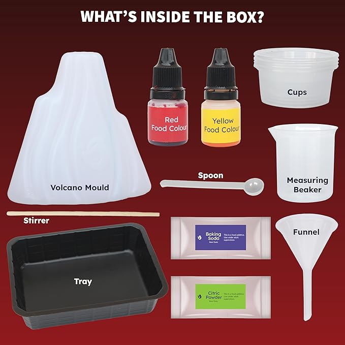 - High-Quality Components: Our volcano kit is crafted with premium materials to ensure durability and safety. The kit includes essential tools like a cup, beaker, tray, volcano mold, spoon, stirrer, and funnel, making it easy to conduct experiments. Experience exceptional service and high-quality science toys for lasting educational enjoyment.