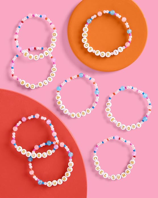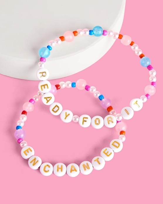 - Friends Forever: Each friendship bracelet is made with faux pearls, color beads and letter beads threaded on a clear elastic.