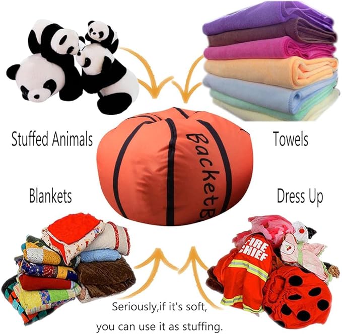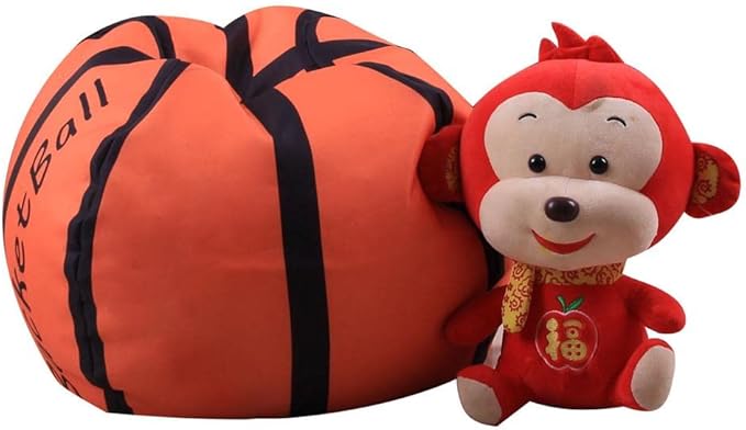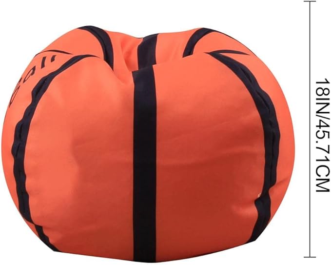 Storage Bean Bag Chair 18 Inch Beanbag Cover with Zipper for Kids Plush Toys Game Play (Basketball)