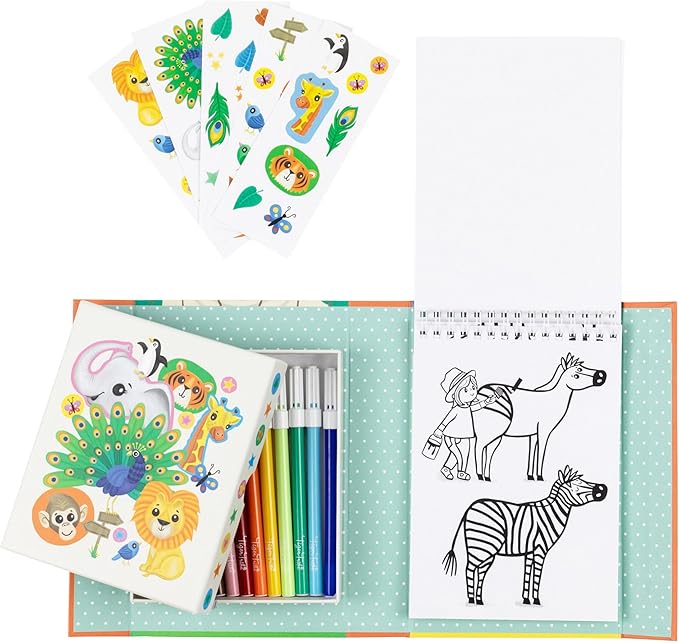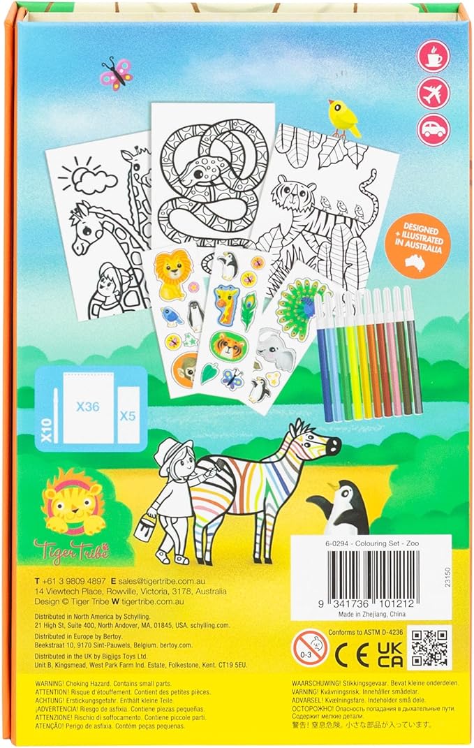 Tiger Tribe: Coloring Set - Zoo - Activity Set w/Stickers, Coloring Pages & Markers Stored Inside Magnetic Sealed Storage Box, Portable, Kids Age 4+