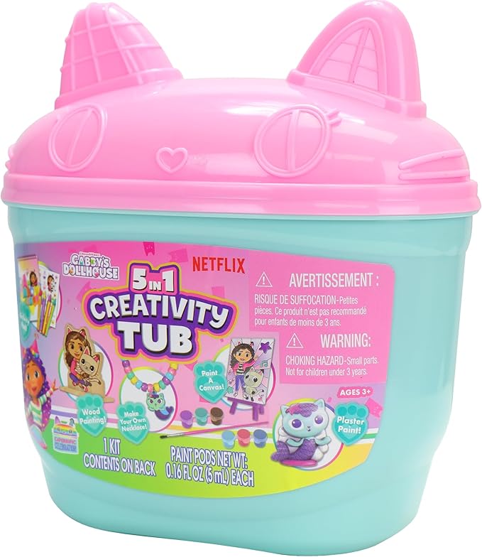 - A Great Intro to Crafting: Get creative with the Gabby's Dollhouse 5 in 1 Creativity Tub, complete with supplies to try painting, jewelry-making, coloring, and so much more.