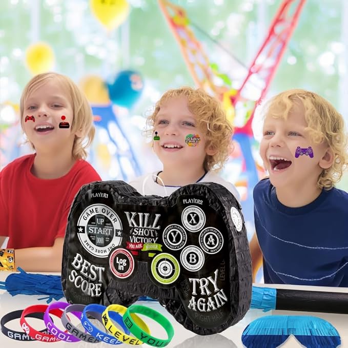 - ENJOY THE PINATA FUN: Fill the pinata with candies, chocolates, and confetti, then hit the pinata one by one to release all the items inside and surprise the kids. The video game controller pinata not only a fun game for your party but also a beautiful decoration for the video gamer party.