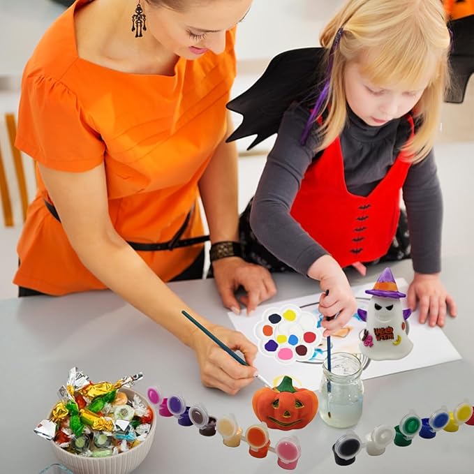 - DIY Fun - The package include 1 Pumpkin Night Lights, 1 Ghost Night Lights, 1 pigment tray, 1 stickers, 2 paint brushes, 12 paint pots. Good for kids to diy their halloween night lights