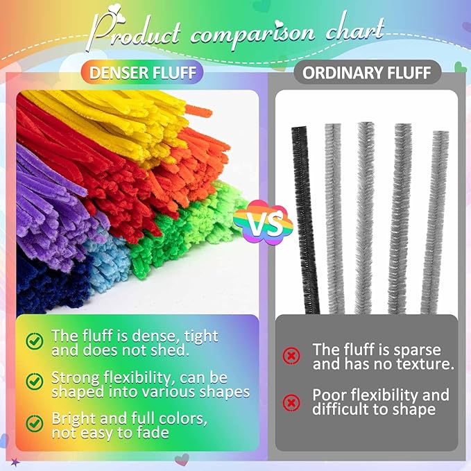 - Vibrant Multicolor Design: bring your creative projects to life with our multicolor pipe cleaners; Our pipe cleaners craft supplies are not just useful but also colorful, adding a vibrant and exciting touch to most of your craft projects; Suitable for creating different sorts of crafts and decoration