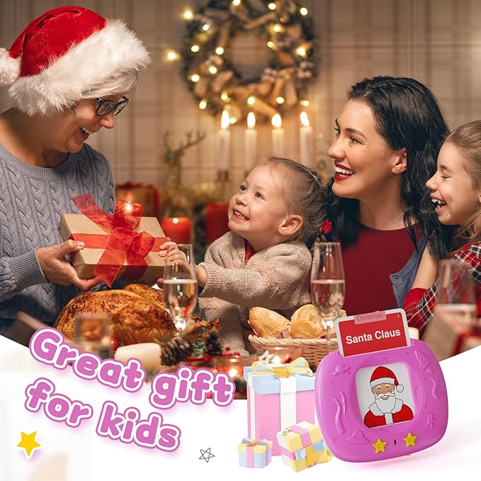 Toddlers Talking Flash Cards with American Accent & 288 Sight Words, Speech Therapy Toys for 3 4 5 6 Years Old Boys and Girls, Learning Montessori Sensory kit, Kids Birthday Gifts (Pink)