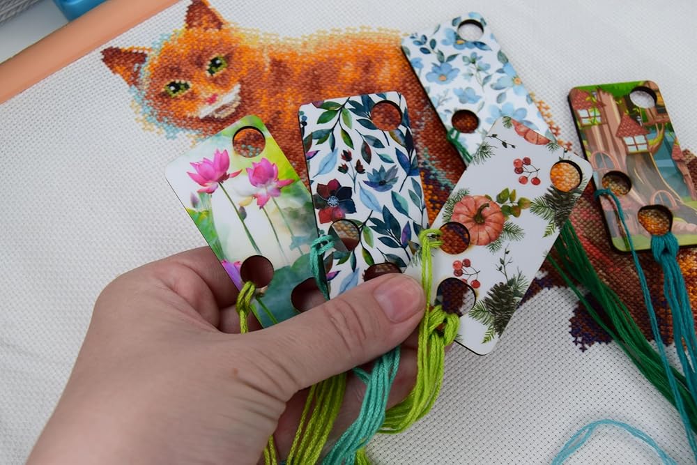 Floss drops cross stitch Wooden thread drops organizer floss drop for cross stitch kit fox embroidery floss storage holders for threads The set of 6 cross stitch retreat gifts