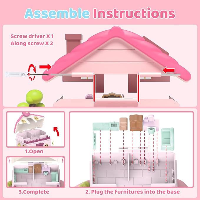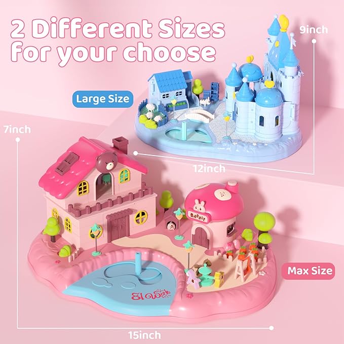 - Our dollhouse is made of non toxic materials and a sturdy structure, ensuring safe play for children. Measuring 15 x 12 x 7 inches, it's perfect for girls ages 3 and up. This not only a toy house, but also an investment in your child’s fun and development