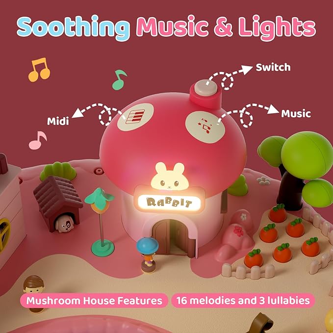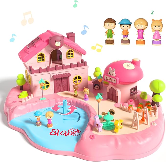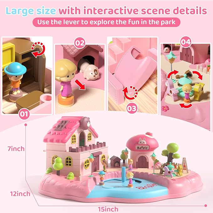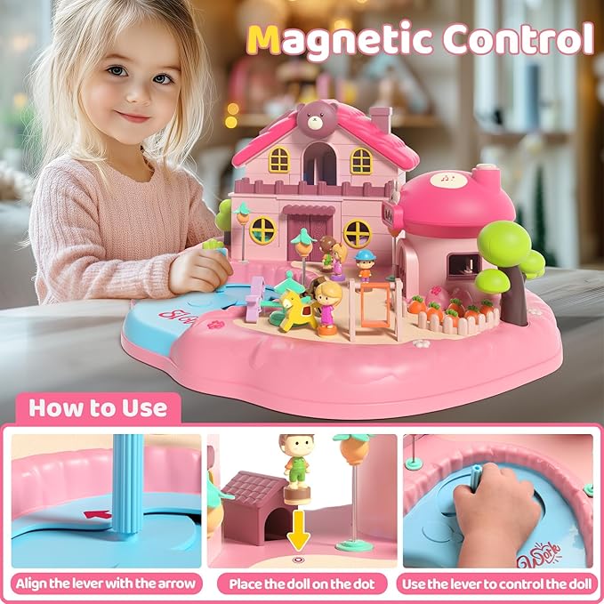 - This doll house playsets features multiple magnetic triggers. Move the figure to specific spots, pull the lever, enhancing interactive play between figure and movable parts. Open the mushroom house to activate lights and music, immersing kids in a magical world