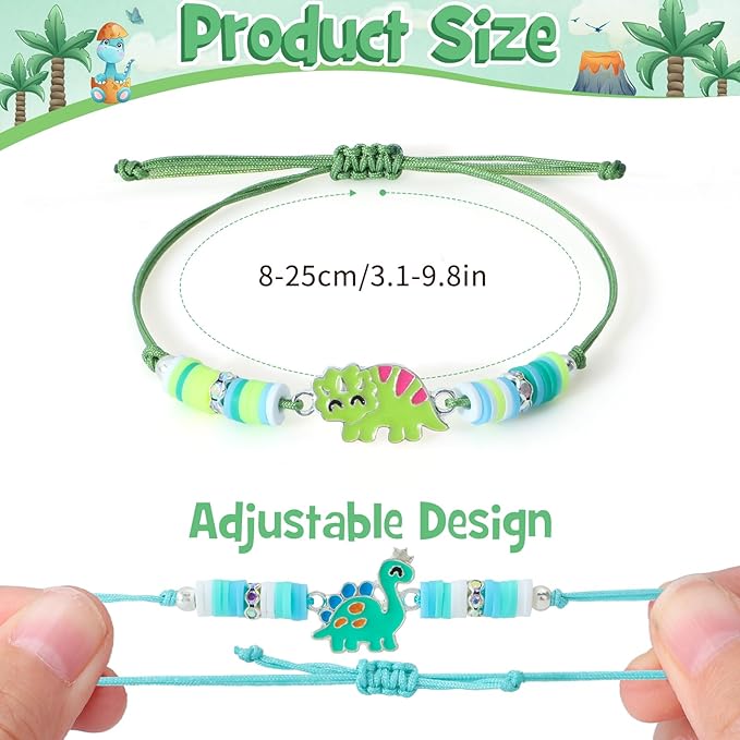 - Premium Adjustable Bracelets: Made of premium alloy material, ensuring that each dinosaur bracelet is lightweight, reliable and durable. The size of the girls bracelet is adjustable, which is suitable for most girls' wrists and can be worn for a long time and easily take off. Girls can enjoy the princess summer party without worries