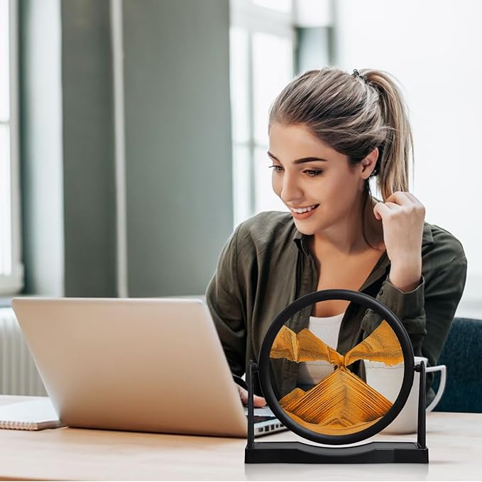 - [Office Desk Decor] Sand art liquid motion is a great office decor to place on your desk. Moving sand art can help you relieve stress and relax your eyes when you are feeling stressed out at work, making it an excellent choice for desk decor.