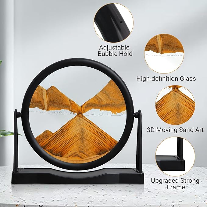- [Relaxing Desk Toys] With each turn, moving sand art creates brand-new sand art pictures. Watching the colorful sand fall slowly can bring peace and calm your mind, helping you relieve stress.