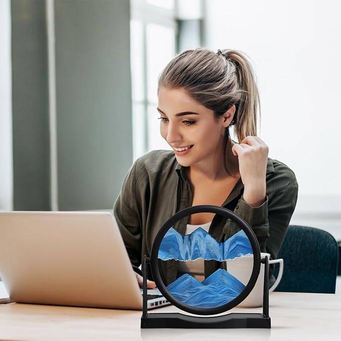 - [Office Desk Decor] Sand art liquid motion is a great office decor to place on your desk. Moving sand art can help you relieve stress and relax your eyes when you are feeling stressed out at work, making it an excellent choice for desk decor.