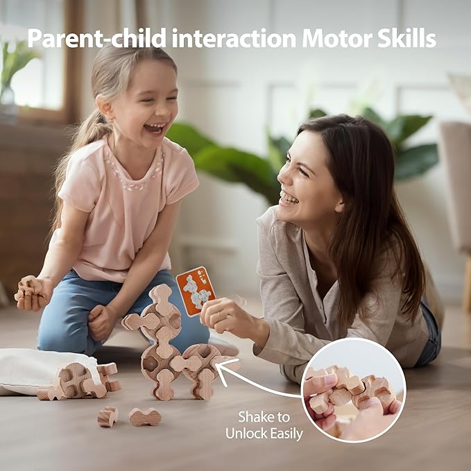 - PARENT-CHILD BONDING BOOSTER -Turn off electronics, return to natural toys and have fun together! With parent-child interaction cards,(cute puppy, letters, robots,etc). This montessori toys help parents and kids bond. As well as offering educational value, developing skills like fine motor and spatial awareness. Build memories together, away from screens, in a heart-warming playtime