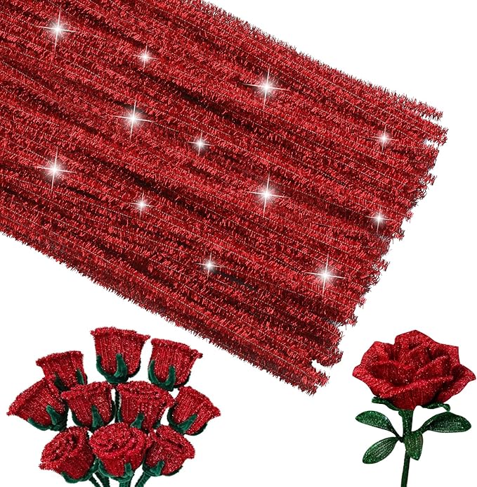100Pcs Pipe Cleaners Craft, Glitter Pipe Cleaners Crafting Creative DIY Hand Craft Supplies for Festivals Decorations, Pipe Cleaners in Glitter Red